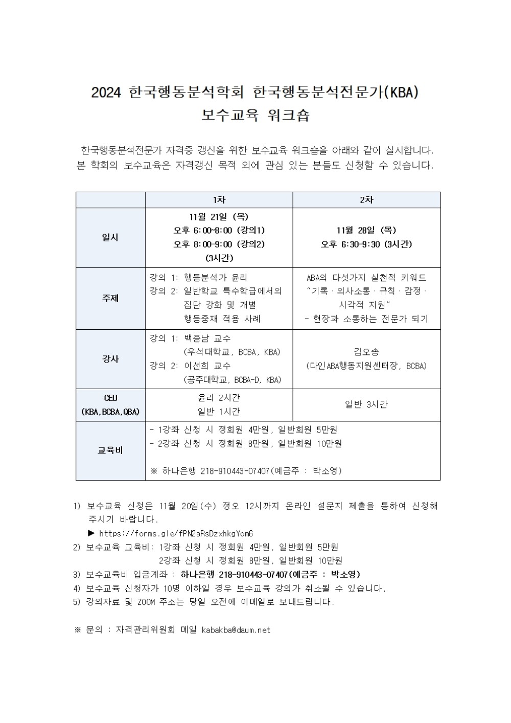 장애인의 문제행동의 원인 분석과 중재를 담당하는 행동분석 전문가의 양성을 위하여 창립되었습니다.